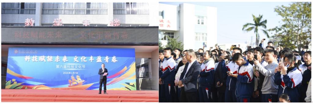 副院长马金星教授、院长助理周扬副教授带队,联合物理与光电工程学院、信息工程学院、集成电路学院、材料与能源学院,赴汕尾市林伟华中学参加该校第六届科技文化节,通过科技项目展示、专业讲解与互动交流,让中学生们近距离感受我校的科技创新氛围与学科特色。