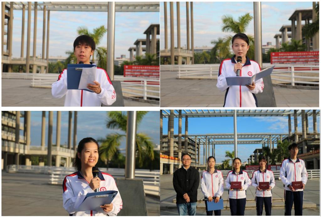 在大学城校区正门广场举行“铭记历史当自强 奋勇逐梦谱华章”主题升旗仪式暨爱国主义教育活动。学院党委副书记武慧娟、学校学生处思教科王治力老师、2025级本科生班主任洪念老师、学院专职辅导员、2025级全体本科新生及青马班学员参加。活动由本科生辅导员欧少珍老师主持。